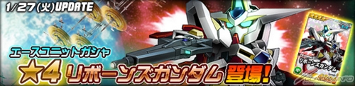 而在王牌机体转蛋中,则新增了“★4 再生高达”、“★3 堕天使高达(MS)”、“★3 高机动型渣古II”等机体。“★4 再生高达”是搭载强化零件“双重动力装置(Τ)”的强力机体,一定要拿到手喔!
