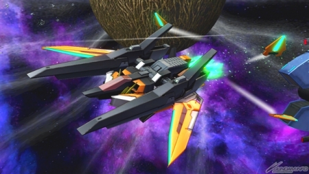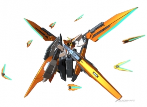 在 本作中是以3000COST的射击偏向万能机体登场,能够运用全身搭载的火炮发动射击战,还有依靠变形机构和GN推进器输出的机动力。MS形态相当容易操 作,有可以任意切换输出来发射2种不同子弹的主射击“GN剑步枪”,集气格斗“GN浮游剪型BIT”,擅长用这两招的组合来玩弄对手。