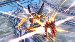 另一方面,MA形态有可以如同从敌机上方洒下飞行射出的“GN飞弹”以及喷射 “GN飞弹货柜”产生巨大的爆风给与对手大量伤害的特殊射击等等,有许多相当有个性的强力武装。两形态共通的特殊格斗是一口气进行长距离移动的特殊移动,不管是拿来一击即退或是回避都很好用。