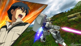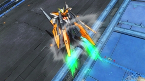 ▲特殊格斗武装“GN推进器”会向对手快速地靠近。摇杆控制的方向会改变行经轨道,摇杆不动或是往前会向对手直直前进,摇杆左右会斜向前进,摇杆往后就是往自机后方移动。