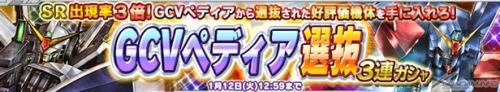 选出在GCV PEDIA中,评价获得★4以上的机体・驾驶员・辅助卡片为中心搭配的转蛋。1天可以抽5次,
