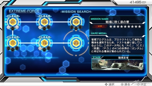 FORCE」无关模式的进行状况,可以选择所有的可操作游玩机体。