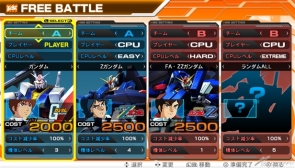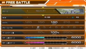 「FREE BATTLE Ver.1.00」是使用初期性能的可操作游玩机体,自由设定