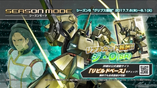 7月6日(四)起开始「季赛5 格利普斯战役」。本季中,将能获得机台中没有的新实体卡「THE・O(SR)」作为奖励。在游戏连动网页 「Rebuild Base」上,会依据游玩次数来给予相应的「刮刮乐」机会,可获得包含SR卡片在内的各种奖励。活动期限至8月1日(二)为止。