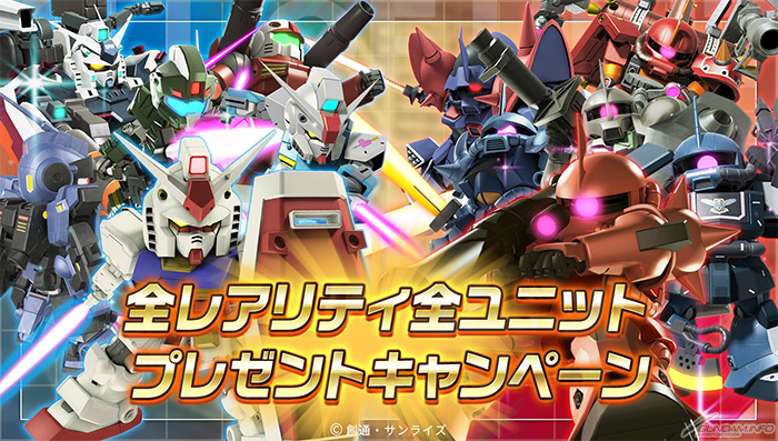 为纪念大型更新,举办了高达游戏APP史上首次的「全稀有度全机体赠送活动」。是可一口气获得相当难以入手,以及在敌方阵营无法收集到的机体的难得机会。请把握这个机会来强化自己的队伍吧。