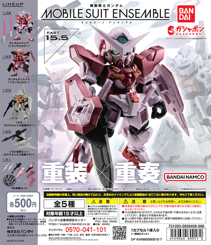 转蛋商品“机动战士高达 MOBILE SUIT ENSEMBLE 15.5”,将于1月第4周起在日本国内转蛋自动贩卖机等处发售。售价为1次500日圆(含税)。