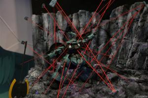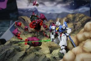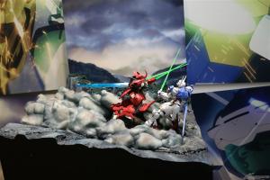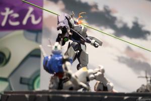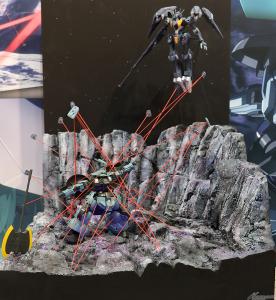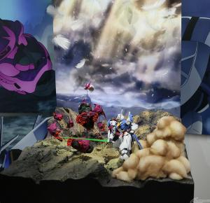 以主角机“风灵高达(改修型)立像”(2m大)为首,重现剧中印象深刻场景的“盖尔的帐篷”、可以用LED影像体验决斗的摊位。