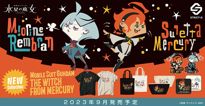 第一弹主打出自‘机动战士高达 水星的魔女’的斯莱塔·墨丘利和米奥莉奈·伦布兰。以T恤为首,推出迷你毛巾、橡胶吊饰、手提袋、钱包共5款商品。