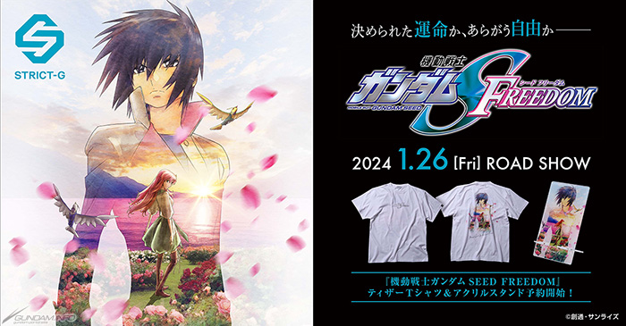 2024年1月26日(五)起在全国上映的剧场版‘机动战士高达SEED FREEDOM’的视觉图款式的“T恤”和“压克力立牌”登场。