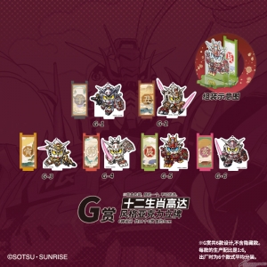 然后E赏到G赏分别是SD“子鼠”“丑牛”“寅虎”“卯兔”“辰龙”“亥猪”高达的“不锈钢杯”“金属钥匙圈”“风格压克力立牌”,最终赏则是A赏的“辰龙高达公仔 大河原邦男插画Ver.”特别配色版。