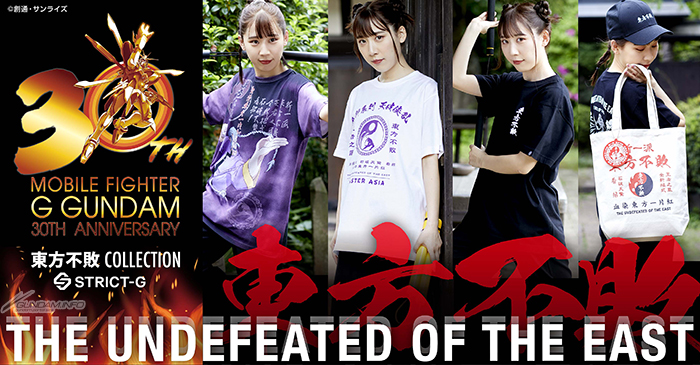 本系列服饰是纪念‘G高达’30周年而登场,推出以流派东方不败和亚洲天王为王设计概念的商品。商品阵容有T恤2种、全彩T恤、鸭舌帽、渔夫帽、托特包、玻璃杯、附吊练橡胶杯垫。
