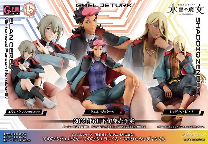 “G.E.M.系列 机动战士高达 水星的魔女 掌心盖尔君”“掌心伊兰君”“掌心沙迪克君”,6月下旬由MEGA HOUSE发售。售价为各7,920日圆(含税)。
