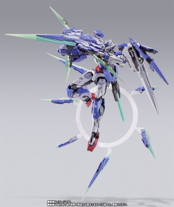 “量子型00全刃式”终于在METAL BUILD登场。维持了广受好评的发光机构及展开成“量子爆发 “常规型””的机构,藉由新设计的背包和“GN剑IV 全刃式”重现丰富型态。作为原创机构,能够使用第4把“GN刀”及各种连接零件构成新的外观。装甲部/关节部为首的配色也全数更新,以最新样式登场。