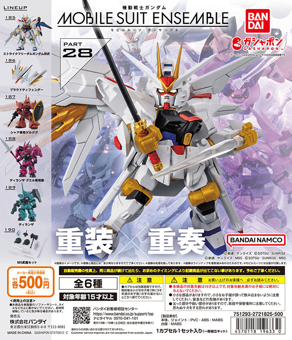 “机动战士高达 MOBILE SUIT ENSEMBLE 28”将于11月第5周起在日本国内转蛋自动贩卖机等处陆续发售。售价为1次500日圆(含税)。