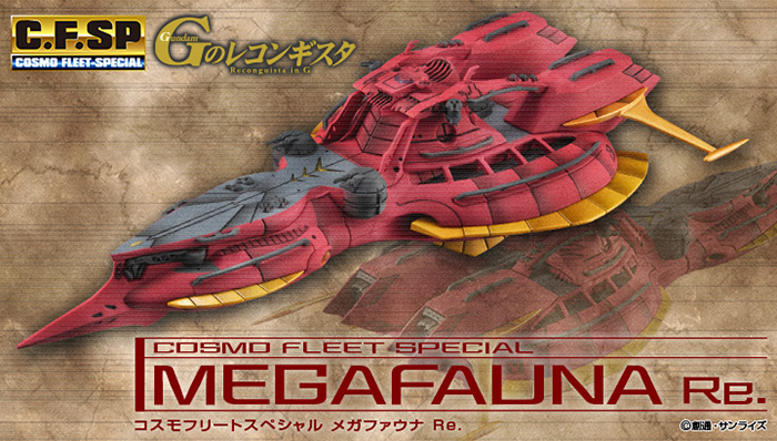 作为装点MEGA HOUSE推出的宇宙战舰公仔系列“宇宙舰队特选集”复活的第7弹,出自‘Reconguista in G’,主角贝尔利・杰纳姆等人搭乘的海盗部队母舰“梅格法纳”登场。