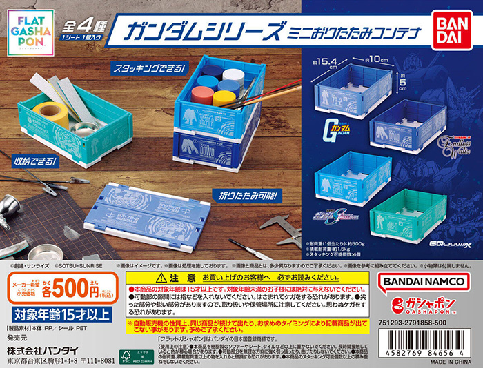 “[Flat Gashapon]高达Series Mini Oritatami Container”将于 7 月第 3 周起在全国扭蛋自动售货机和其他商店依次发售。 总共有 4 种类型,价格为一次 500 日元(含税)。