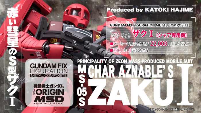 由以压铸和ABS为主要材质的完成品模型“GUNDAM FIX FIGURATION METAL COMPOSITE”(G.F.F.M.C)推出,“MS-05S 渣古I(夏亚专用机)”将于2021年1月发售。售价为22,000日圆(含税)。