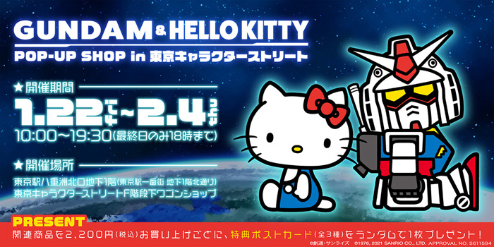 贩卖大量“2020年 爱与和平的高达&Hello Kitty Project”原创商品的“‘高达&Hello Kitty Project’POP UP SHOP”,将于明日1月22日(五)起,在东京车站的东京动漫人物街 F楼梯下的摊车商店举办。