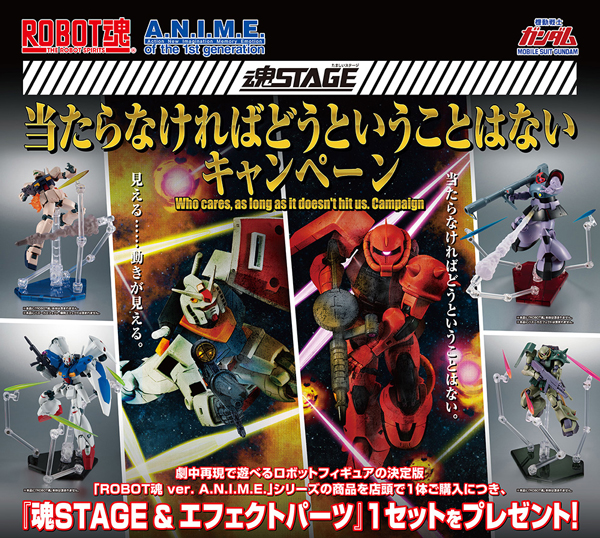 本活动是只要在商店内购买1个“ROBOT魂 ver. A.N.I.M.E.”系列商品,就能获得“魂STAGE&特效零件组”(1组)的赠礼活动。