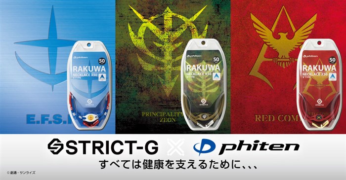 采纳高达世界观的成衣商店“STRICT-G”,于明天6月4日(六起)发售“Phiten”与‘机动战士高达’的3款联名商品“RAKUWA项链”。