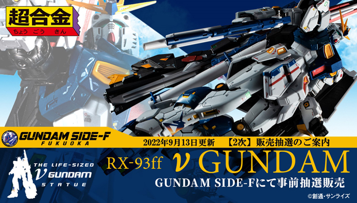 高达复合式娱乐设施“高达福冈公园”内的“GUNDAM SIDE-F”将举行“超合金 RX-93ff ν高达”抽选贩售。售价为26,400日圆(含税)