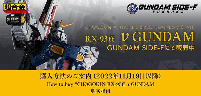 于高达综合娱乐设施“福冈高达园区”内的“GUNDAM SIDE-F”实施的“超合金 RX-93ff ν高达”门市贩售,在今天11月11日(五)起开始事前预约。