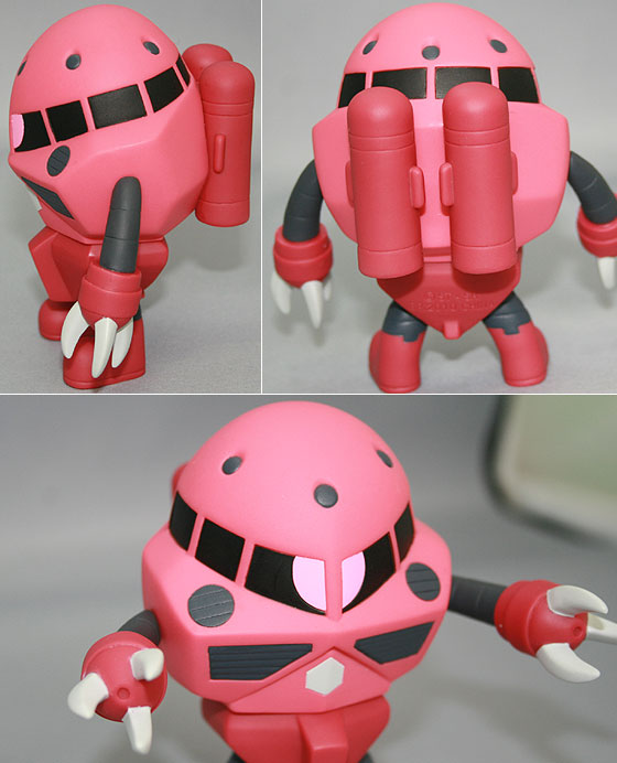 | 首先是比平常还要快三倍的「夏亚专用渣古」登场。全长约10cm,独眼的感觉非常好!可以不拆封直接装饰的本系列,但果然还是拿出来实际触摸看看,可爱度更是完全不同! td> | ||