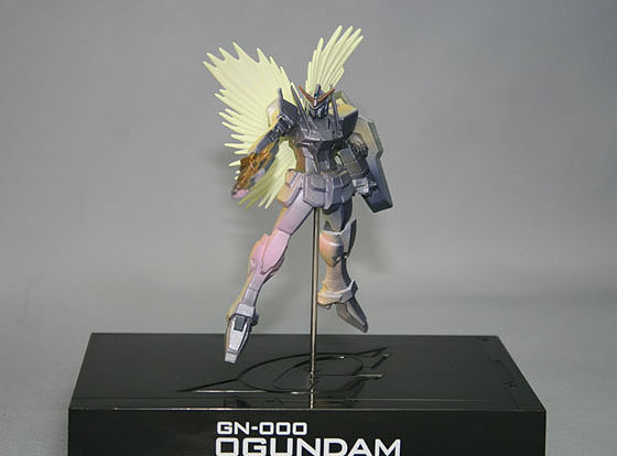 | 首先从在「机动战士高达00」中活跃由里朋斯.阿尔马克驾驶的「0高达」开始介绍!台座与支柱以及已涂装完成的0高达模型,立即组装完成。虽然无法活动,但这是只有固定模型才有办法做到的俐落站姿! | |