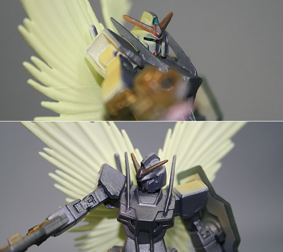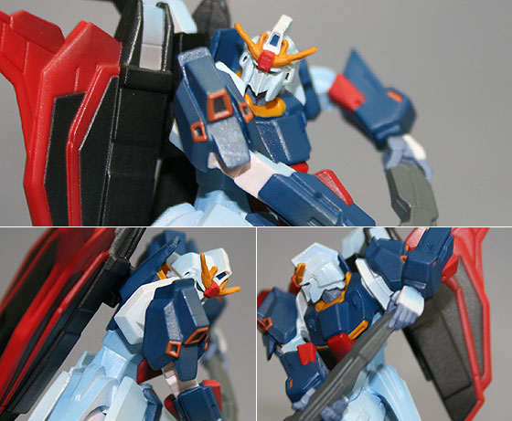 | 3机体中最充满跃动感的姿势,总而言之就是充满魄力!白色的机体美丽的映照出蓝色影子,眼睛也很鲜艳。 |