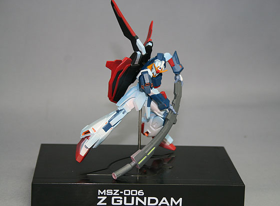 | 接着是「Z高达」登场。幽谷的可变MS、卡密儿.维登的爱机「Z高达」。 虽然因为是固定模型所以无法变形为WAVE RIDER,但能享受充满魄力的动作!! | |