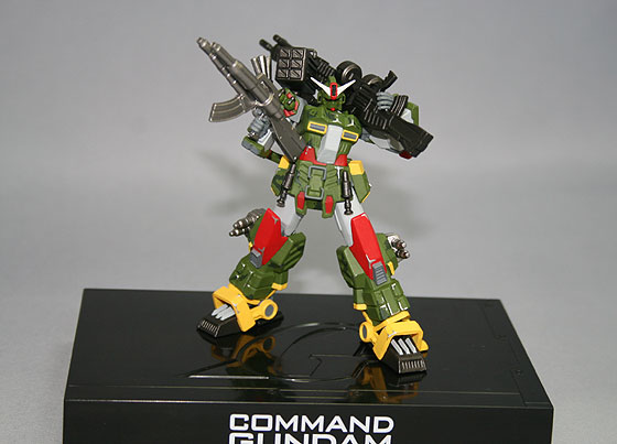 | 最后是「指挥官高达」的介绍。没有使用支柱,直接利用足部的突起部份插入台座的款式。相当帅气的站姿! | |