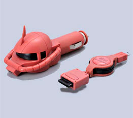 以夏亚专用渣古与量产型渣古的头部为主题的车用手机充电器,由Plex好评发售中。价格各为1,780日圆(含税)。