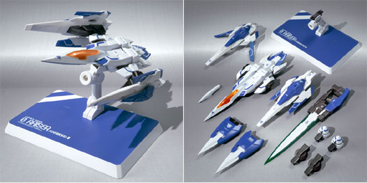 附有机首感应盖零件和粒子储藏槽,将能重现TV版和电影版的00强化模块。「0强化战机」除了停机用煞车可以开关以外还有专用台座也一并含在商品中。