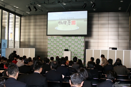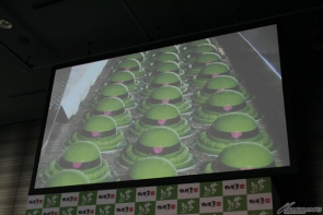 首先是由相模屋董事长,鸟越淳司先生为“渣古豆腐”进行介绍,并诉说商品诞生的经过等。本次在舞台装设的荧幕上播映了以‘机动战士高达’为主题的影片,并由永井一郎先生担任旁白。