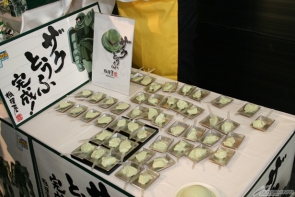 活动之后,会场除了举行“渣古豆腐”的试吃会外,还展示有以“渣古豆腐”所使用的‘机动战士高达’世界观为主题开发出的3种场景料理菜单“原创场景料理”。另外还展示有等身大的渣古头部等,会场可说是渣古清一色。