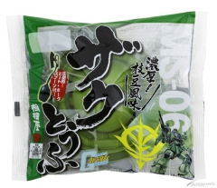 本次发售的“渣古豆腐”采用以“渣古”头部为主题的容器,并以表现出机体配色的毛豆口味豆腐装填,不论是形状还是配色都会令人联想到“渣古”。