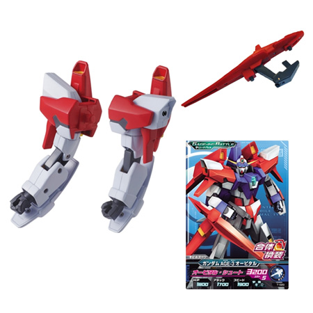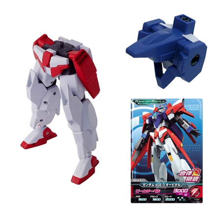 设置于全国的“GAGE-ING BATTLE BASE”以扫描各部位搭载的晶片进行游玩的玩具“GB(GAGE-ING BUILDER)系列”推出‘机动战士高达AGE’奇欧篇主角机“高达AGE-3”G装备“轨道型手臂”、“轨道型腿部”登场!