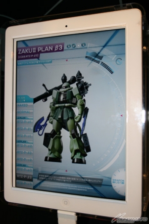 ▲“ROBOT魂”和“电子产品”融合的展示,ROBOT魂令人熟悉的“硬点系统”在平板电脑上用触碰的方式来体验。