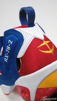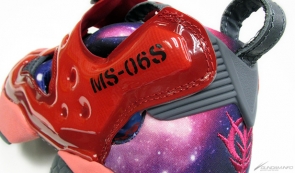 这 次合作的款式是为了纪念“INSTA PUMP FURY”诞生20周年而发售的,以‘机动战士高达’代表性的MS“RX-78-2 高达”和“MS-06S 夏亚专用渣古”的意象来做设计,共有两种颜色款式。“Reebok CLASSIC INSTA PUMP FURY RX-78-2 GUNDAM”是以红・蓝・黄三色加上联邦军的标志设计而成。“Reebok CLASSIC INSTA PUMP FURY MS-06S CHAR'S ZAKU”是以“红色彗星”夏亚・阿兹纳布尔代表色的红底配色加上吉翁公国军标志来设计的款式。