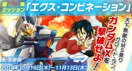 同样是“BUILD G”弹第一次的开发任务“X COMBINATION”,‘机动新世纪高达X’主角卡洛特・兰搭乘的“高达X”来袭。只要能成功过关,高达X就能拿来当作BUILD MS开发。活动期间到11月13日(四)止。