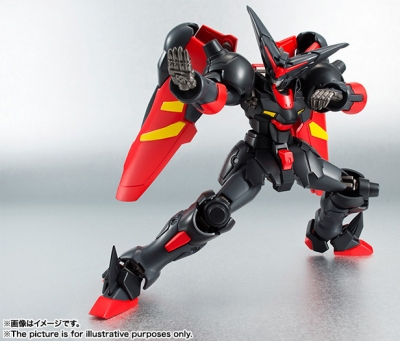 「ROBOT魂 天王鋼彈」是和「神威鋼彈」成對的機體,是款有著極限可動性的立體商品。透過新機軸所帶來的可動性和多種手部零件,可重現許多的動感姿勢。另外還內附了必殺暗黑掌等多種手部零件,能夠擺出取多姿勢來。