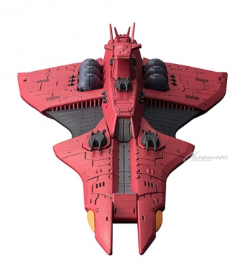 本商品是‘机动战士高达 逆袭的夏亚’中,夏亚・阿兹那布尔总帅的座舰,‘机动战士高达UC’中,被称之为红色彗星再来的弗尔.伏朗托也有乘坐,可说是新・吉翁象征的一台舰艇,以相当精密的细节实体化的商品。
