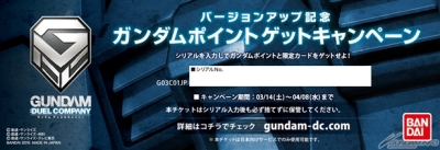 NET CARD DASS的“ GUNDAM: DUEL COMPANY”,决定于5月实施大型更新,将举办记念实施更新的“GP赠送活动”和“第2次世界大赛”。