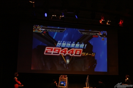 ▲被强烈一击击破的“TRYON 3高达”。藉着意想不到的牵绊反击起死回生,令会场气氛一下热到最高点!