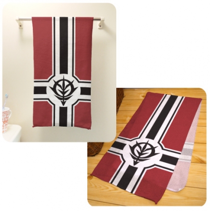 图案分别是“地球联邦军”标志和“吉翁公国军”军旗的沐浴用毛巾登场。触感不会太坚硬、可以产生细致泡泡的洗澡用毛巾。正是因为日常使用的东西,所以才更想要用喜欢的作品图案,对于有这样想法的人,本商品是最适合的!。