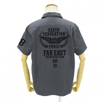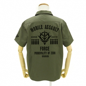 「夏亚披风的刺绣风印刷连帽外套」,是以『机动战士高达』中夏亚的披风为设计形象的轻薄衣物。披风图案的部分藉由发炮印刷,表现出立体的刺绣风格。