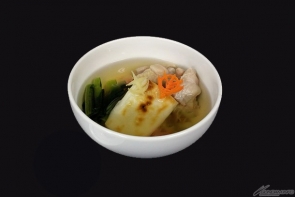【左】原创什锦汤 价格:单品 540日圆(含税) / 附日本酒杯 875日圆(含税)