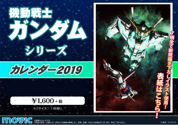 由动画周边制造商MOVIC所推出的「机动战士高达系列2019年月历」,正于全日本书店、ANIMATE等处贩售中。A2尺寸,价格为1,600日圆(未税)。