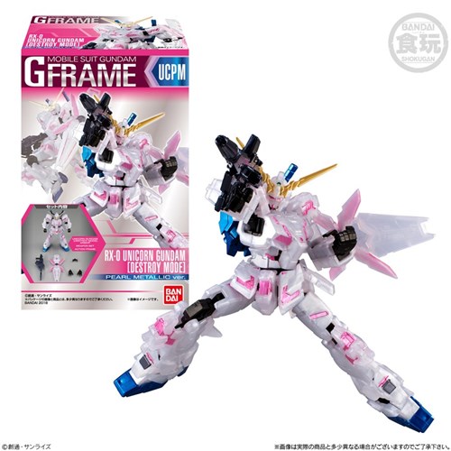 只要在骨架上装上装甲,即可完成的高精细度可动高达模型「机动战士高达 G FRAME」系列的「独角兽高达(毁灭模式)珍珠金属涂装ver.」,于11月23日(五)起在全日本国内的玩具店、高达咖啡厅等食玩贩售区发售。