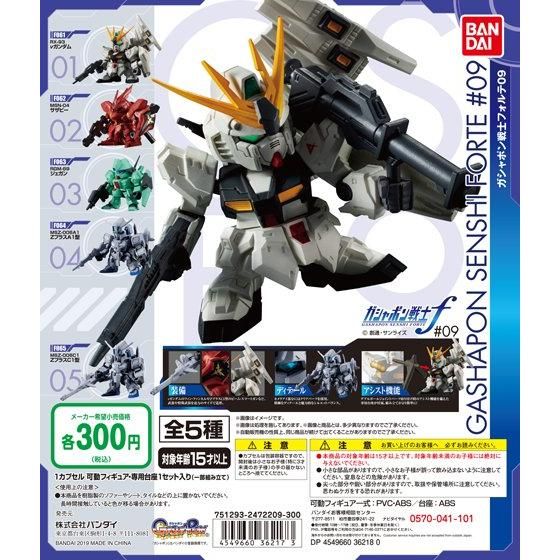 转蛋战士新系列「机动战士高达 转蛋战士FORTE 09」将于6月第5周起,在日本国内玩具卖场等处的转蛋自动贩卖机发售。售价为1次300日圆(含税)。